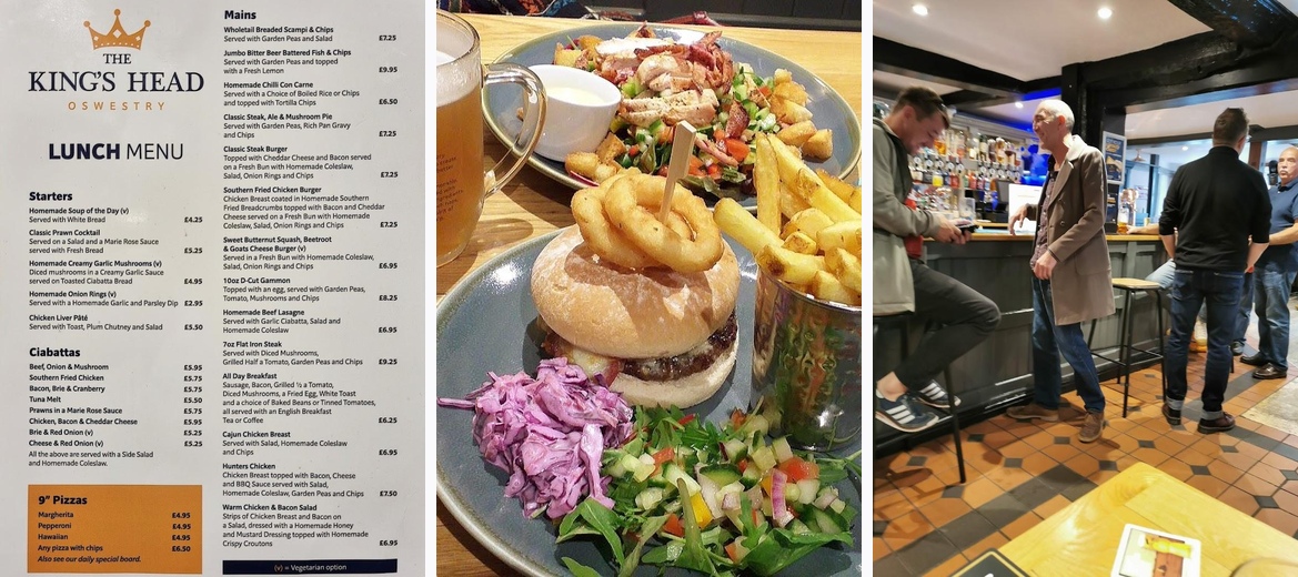 Discover The Kings Head Bar in Oswestry, where friendly staff serve up delicious pub grub like steak and ale pie, gammon, and crispy onion rings. Enjoy a selection of real ales in a welcoming atmosphere. Visit us at 12 Church St, SY11 2SP.