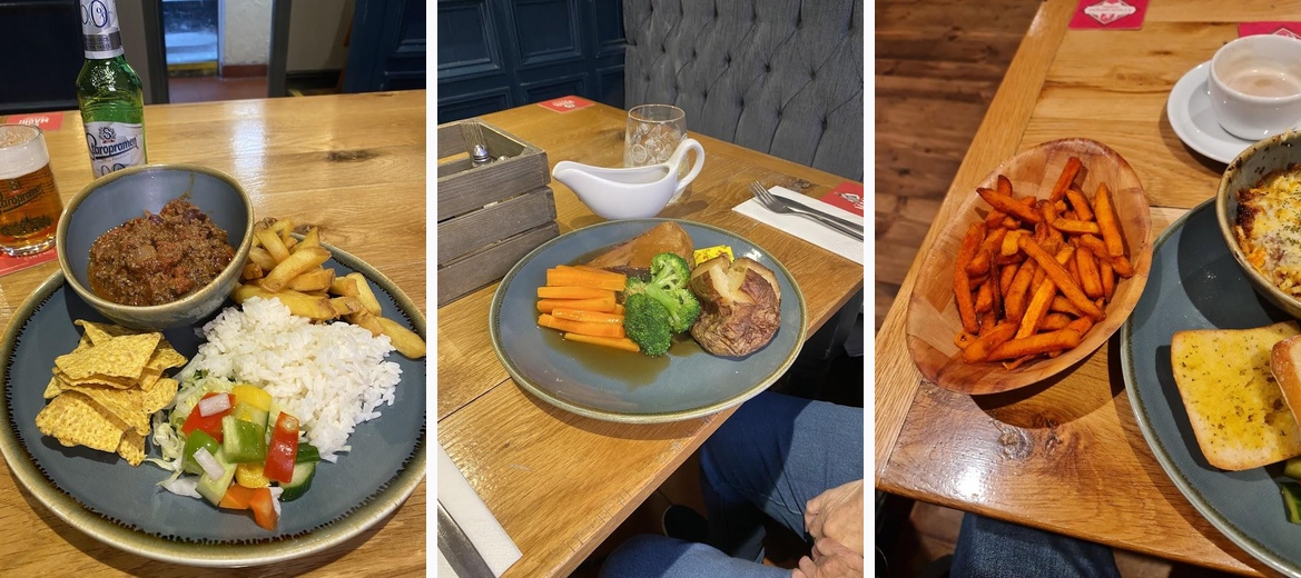Visited Oswestry to walk round market etc, found Kings Head as it said dog friendly, it is dog friendly and the food was really good. I had the chilli con carne with half chips half rice was great , well cooked and nice and fresh. Wife had the pie came with veg all good great value as well for fresh cooked food. Would definitely return if we back in the area